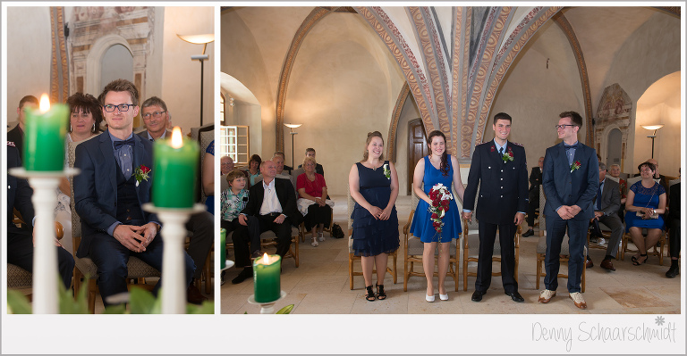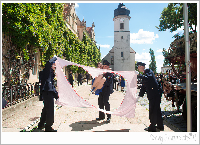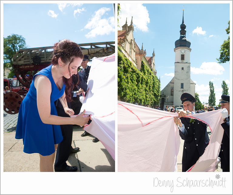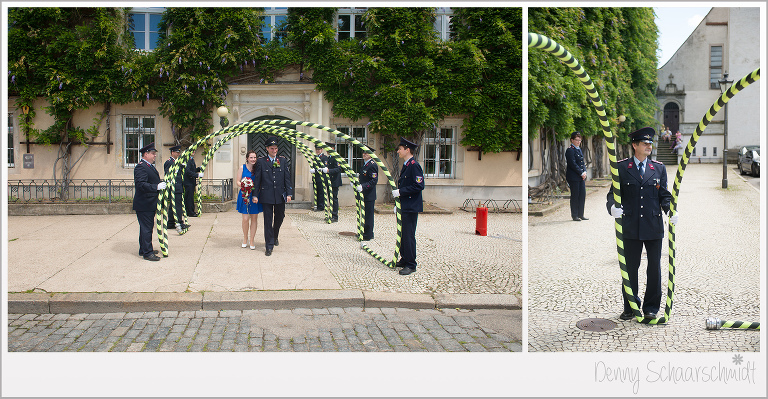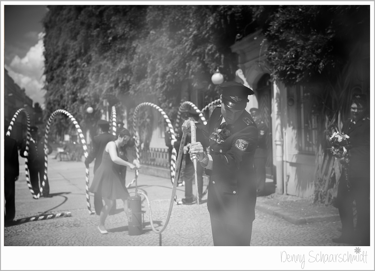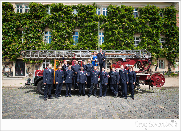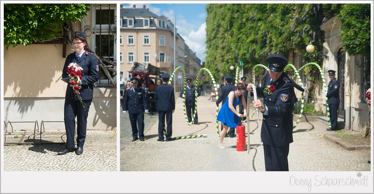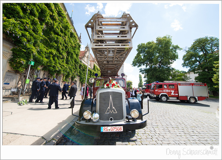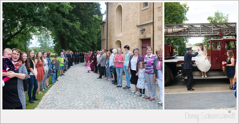 Ich hab ja dieses Jahr schon an vielen tollen Hochzeiten teilnehmen dürfen, aber die Hochzeit von Claudia & Denny war irgendwie anders. Für mich ein ganz klarer Favorit für 2016. Woran das liegt? Ich weiß es selber nicht. Vielleicht lag es an der Feuerwehr oder an der Lokation, der Kirche, der Livemusik oder einfach an dem wahnsinnig netten Pärchen. Apropo Livemusik, Denny spielt zusammen mit Markus in einer Band. Die Beiden sind quasi die Backstreetboy von Sachsen. Eine Hörprobe gibts unter www.zuweit.de. Die beiden Vollblutmusiker bereichern jede Hochzeit. Denny kannte ich schon etwas länger, wir Beide haben zwei Jahre lang auf der Meisterschule geschwitzt. Als ich dann den Anruf bekam und die damit verbundene Frage „würdest du unserer Hochzeit begleiten“, war die Freude meinerseits groß. Bei dieser Frage gab es natürlich nur eine Antwort. Bei dem folgenden Vorgespräch lernte ich dann die Claudia kennen, diese eine Claudia, die mit Denny gemeinsam durchs Leben gehen möchte. Und ich erfuhr von ihrer Hochzeitsplanung. Eine Doppeltrauung solle es werden, standesamtlich und kirchlich an einem Tag. Sportlich sportlich, aber von Stress konnte man an dem großen Tag nun wirklich nicht sprechen. Daumen hoch für Euch Zwei, das war ein absolut perfekter Tag, und ich bin stolz dabei gewesen zu sein. Auch Euch wünsche ich, wie all den anderen Brautpaaren alles Glück dieser Welt und viel Spaß mit eurer traumhaft schönen Hochzeitsreportage.