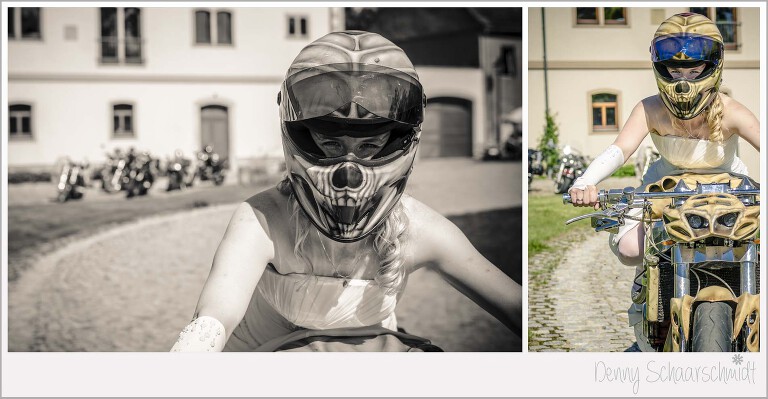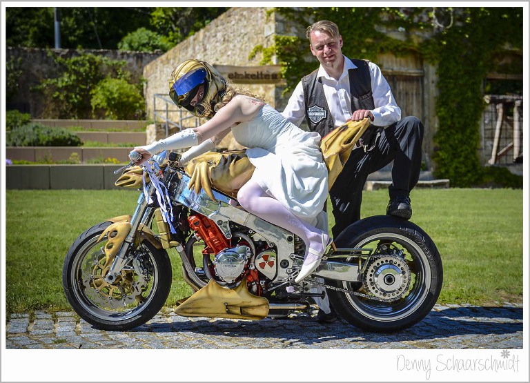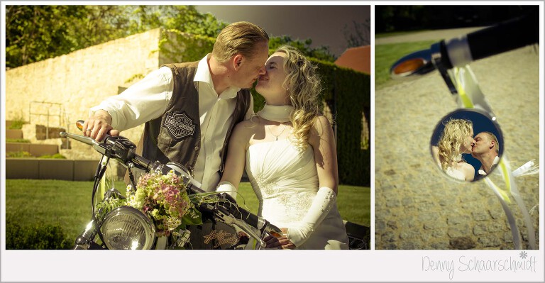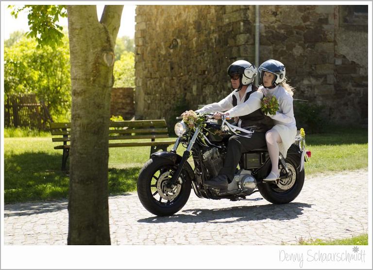 Claudia & Maik, die zwei Motorradfans haben sich auf einem Biker Treffen kennen gelernt. Seid dem gehen Sie den Weg durchs Leben gemeinsam. Die Hochzeit soll die Liebe jetzt noch besiegeln. Freunde der Beiden wollten ein tolles Hochzeitsgeschenk machen und kamen auf mich zu. Eine Motorradhochzeit ist schon was Feines und eine Hochzeitskutsche ist Schnee von gestern. Das Brautpaar hatte sich das etwas modernere Pferd ausgesucht…….