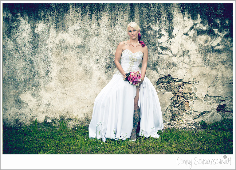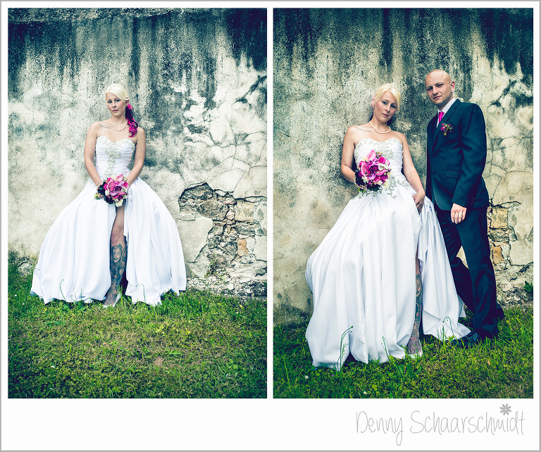 Es gibt auch Paare, die fallen irgendwie durchs Raster, jedenfalls wenn es um das Thema Hochzeit geht. Bunte Haut, Tunnel im Ohr, Kippe auf dem Hochzeitsbild & dann zieht diese Braut auch noch das Kleid hoch…..So oder ähnlich hört es sich an, wenn die ältere Generation in der Nähe vom Hochzeitsshooting auf der Bank verweilt. Genauso ein Paar lernte ich Anfang des Jahres kennen. Jennifer & Robert aus Großenhain hatten mich gebeten, ihre Hochzeit zu begleiten. Personen die aus dem gesellschaftlichen Rahmen fallen sind immer eine willkommene Abwechslung für mich. Und die beiden sind auch noch sehr sympathisch, ich musste einfach JA sagen. Das Ergebnis kann sich sehen lassen, das sind doch mal geile Bilder geworden. Ich wünsche auch Euch liebe Jenni & lieber Robert Alles Glück dieser Welt, und bedanke mich für Euer Vertrauen. Vielleicht sehen wir uns mal auf einem Tuningtreffen. Auf jeden Fall sehen wir die liebe Jenni bald nochmal auf meiner Seite.