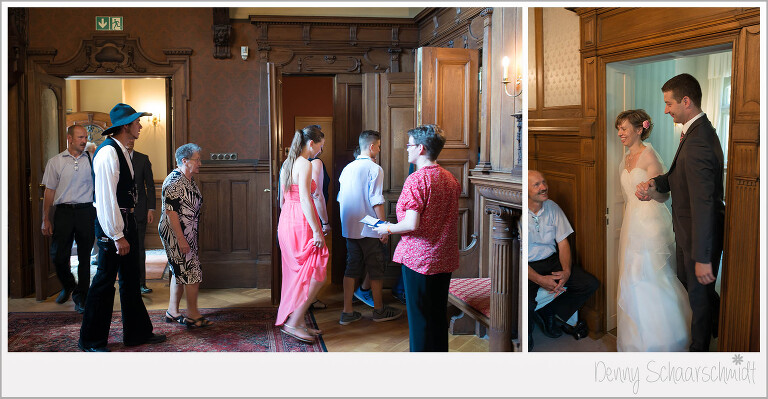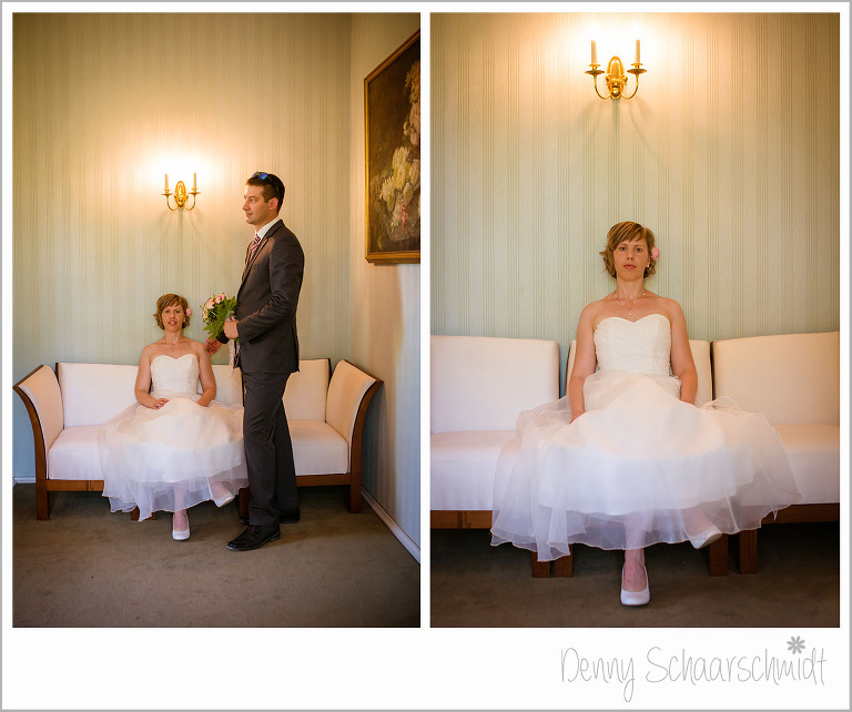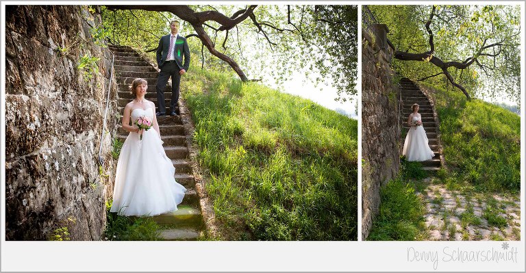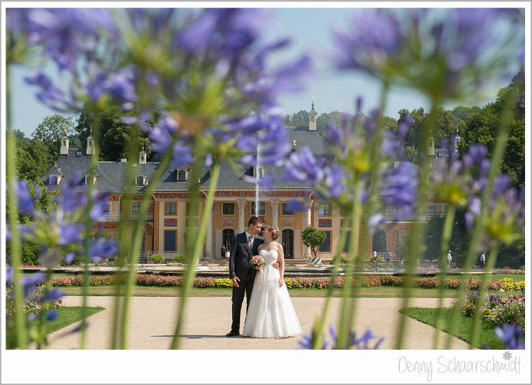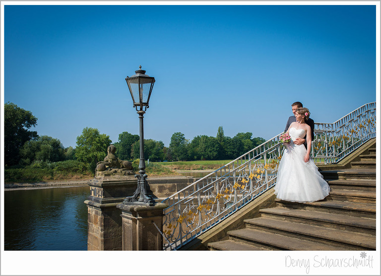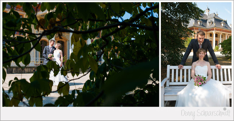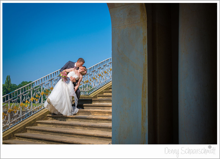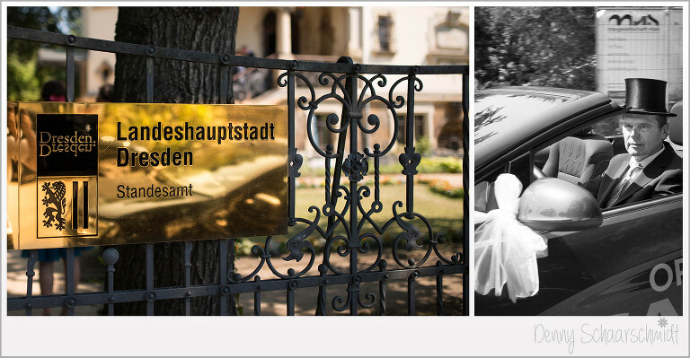 Wie stellt man sich seine eigene Hochzeit vor…….hmmm , gute Frage. Viele Gäste, ein tolles Brautkleid, ein Schloß und viele tolle Bilder, FALSCH!!! Wir heiraten mal fix, machen eine Feier mit den engsten Freunden und Verwanden und gut ist. Friseur und Make Up = Fehlanzeige. Fotografen??? Brauchen wir nicht. Auweia werden jetzt einige sagen, die diese Zeilen lesen. Und Auweia hat auch der Siegmar gesagt als er von der Hochzeitsplanung seiner Tochter erfuhr. Eine kleine Hochzeit ist super aber ohne Fotografen und Bilder fürs Familienalbum? Das geht nicht, dachte sich der Siegmar und rief mich an. Als ich die Geschichte hörte war mir eins klar, hier wird meine Hilfe gebraucht. Ich machte zum ersten Mal ein Vorabgespräch mit einem Brautvater. Der Plan stand und die zwei noch Unvermählten wussten von nichts. Ganz ohne den beiden Bescheid zu sagen ging es aber dann doch nicht. Nach einem kurzen Anruf und einem langen Gespräch im Garten bei Kaffee und Kuchen lernte ich die Stephanie und den Sebastian aus Dresden persönlich kennen. Das Ziel der beiden war es eins, zwei schöne Bilder von der Hochzeit zu bekommen. Der Tag der Trauung war da und ich wartete im Schloss Pillnitz. Ich wartete und wartete und…….wartete. Warum kommt nur keiner??? Da ist doch glatt der ach so coolen Stephanie die Aufregung auf den Magen geschlagen. Aber diese Hummeln im Bauch waren ganz schnell vergessen und es war ein super tolles Shooting in einer wundervollen Location. Aus den gewollten eins, zwei Bildern sind dann letztlich zweihundert traumhaft schöne Hochzeitsbilder geworden. Ich sag Danke für das Vertrauen und für das tolle Shooting im Schloss Pillnitz. Und dann sag ich noch Danke Sigmar. Ohne Siegmar hätte es wohl diese, ich zitiere mal die Braut, „Geilen Bilder“ nie gegeben.