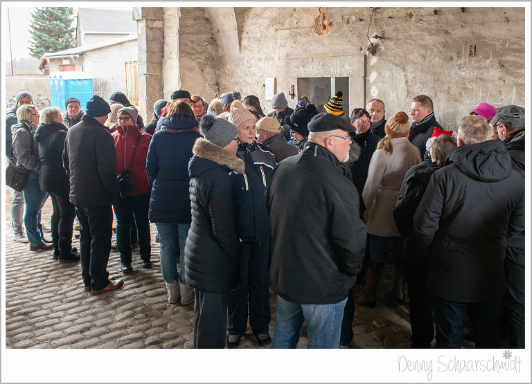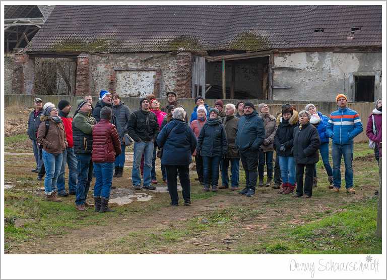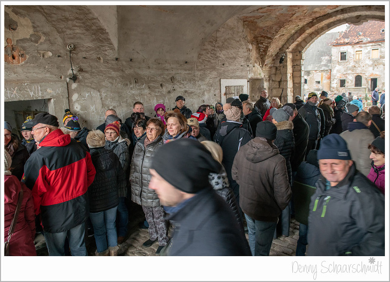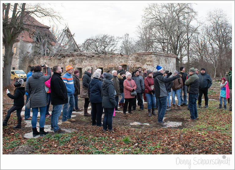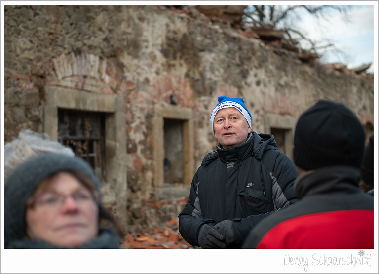 Und nun war es soweit, das Wochenende der Schlossweihnacht war da und der Ansturm auf das Projekt war gigantisch. Vor allem die Geländeführungen waren extrem beliebt. Geplant waren vier Führungen mit a 20 Personen, durchgeführt wurden………wir wissen es nicht mehr. Holger Wolf führte die neugierigen Gäste im Akkord durch das Areal und gab den Besuchern einen Einblick in die Geschichte und in die Zukunft des Tiefenauer Schlosses.